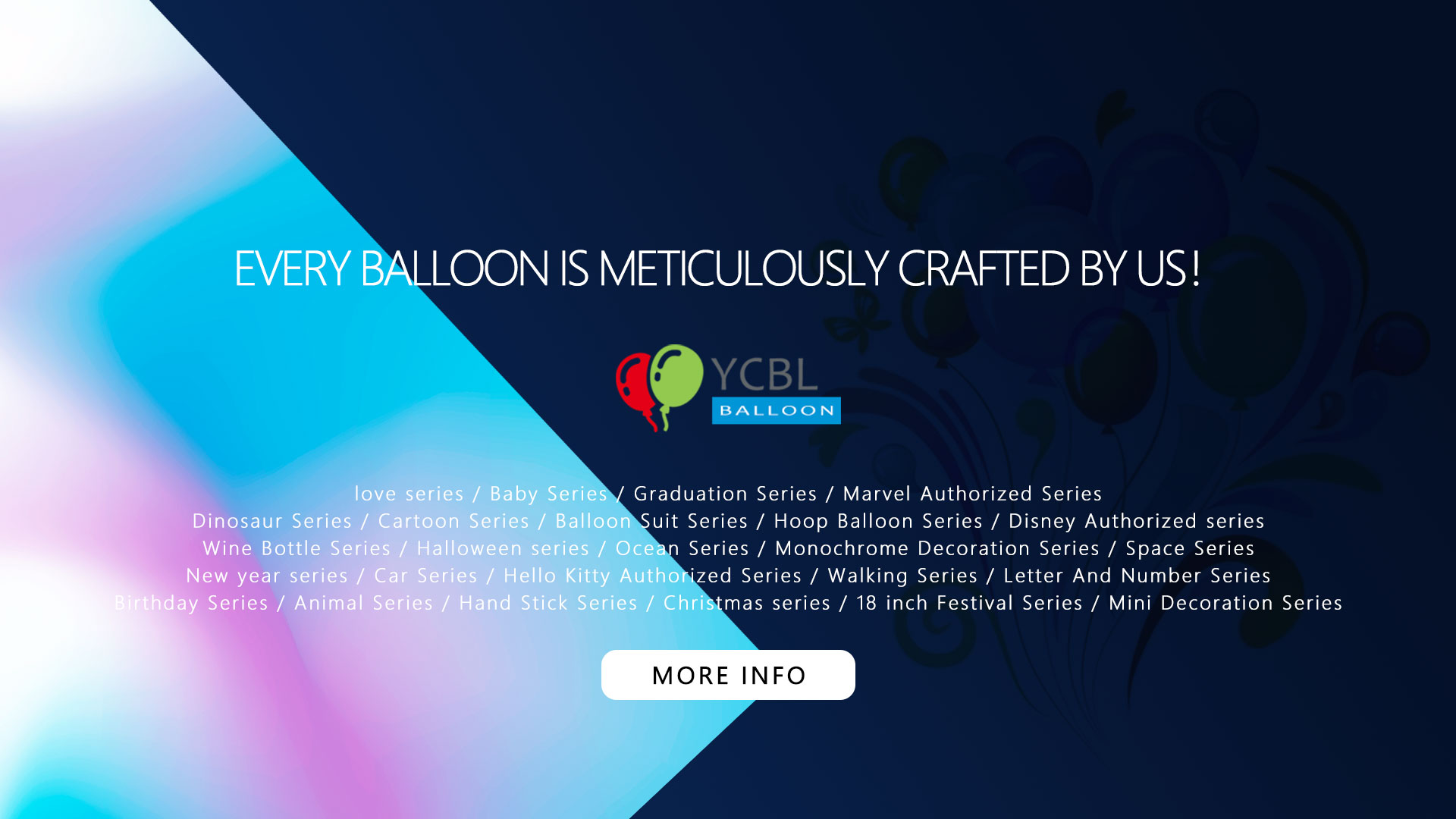 ISO9001 standard certification, YCBL has been specialized in balloon design and production for 13 years, and is a professional manufacturer integrating research and development, production, sales and service